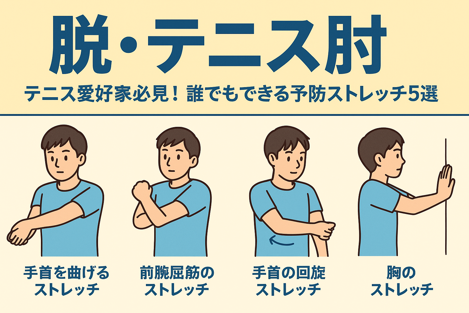 「テニスを続けたいのに、最近肘に違和感が…。テニス肘の痛みや不安を解消し、大好きなテニスを長く楽しむための予防法をご紹介します」。この記事では、テニス肘の原因を簡潔に解説し、今日からすぐに始められる効果的な予防ストレッチを5つ、分かりやすく...
